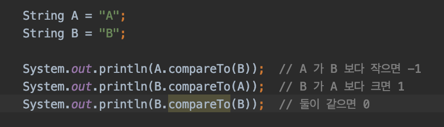 특이한점 : compareTo 함수는 int 일땐 사용 불가 , Integer일땐 사용가능 !