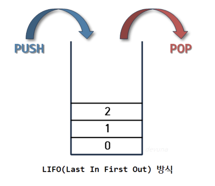 이러한 스택의 구조를 후입선출 ( Last - In , First - Out ) 구조라고 한다.